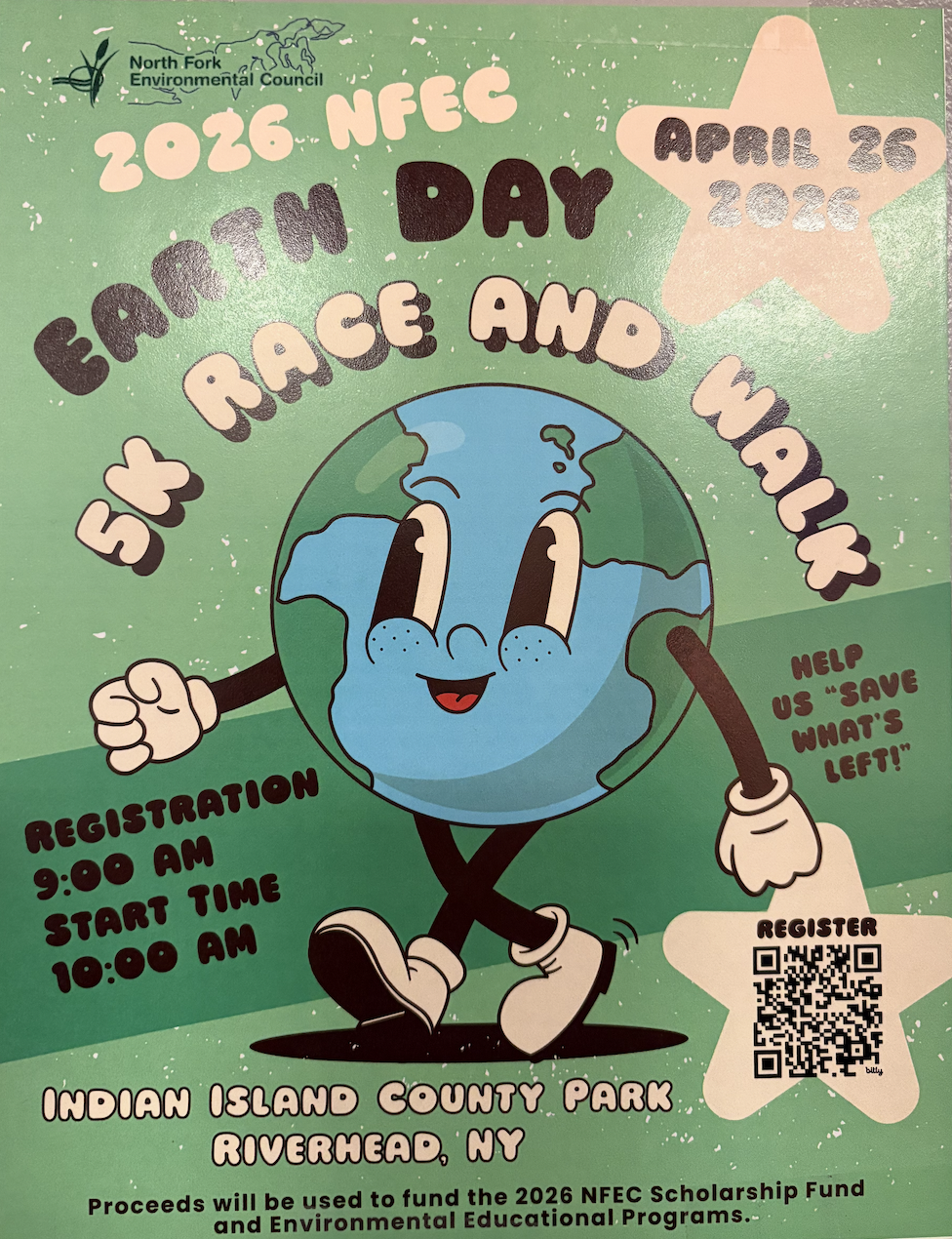 2026 NFEC Earth Day 5K Race and Walk Sunday, April 26, 2026 9:00 AM 1:00 PM Indian Island County Park Indian Point Road Riverhead, NY, 11901 United States (map) Google Calendar ICS INFO AND REGISTER HERE