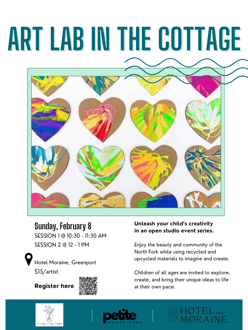 Join Artfully Long Island and Petite North Fork on Sunday, 2/8, for a morning of open art exploration, good vibes, and great views at Hotel Moraine.