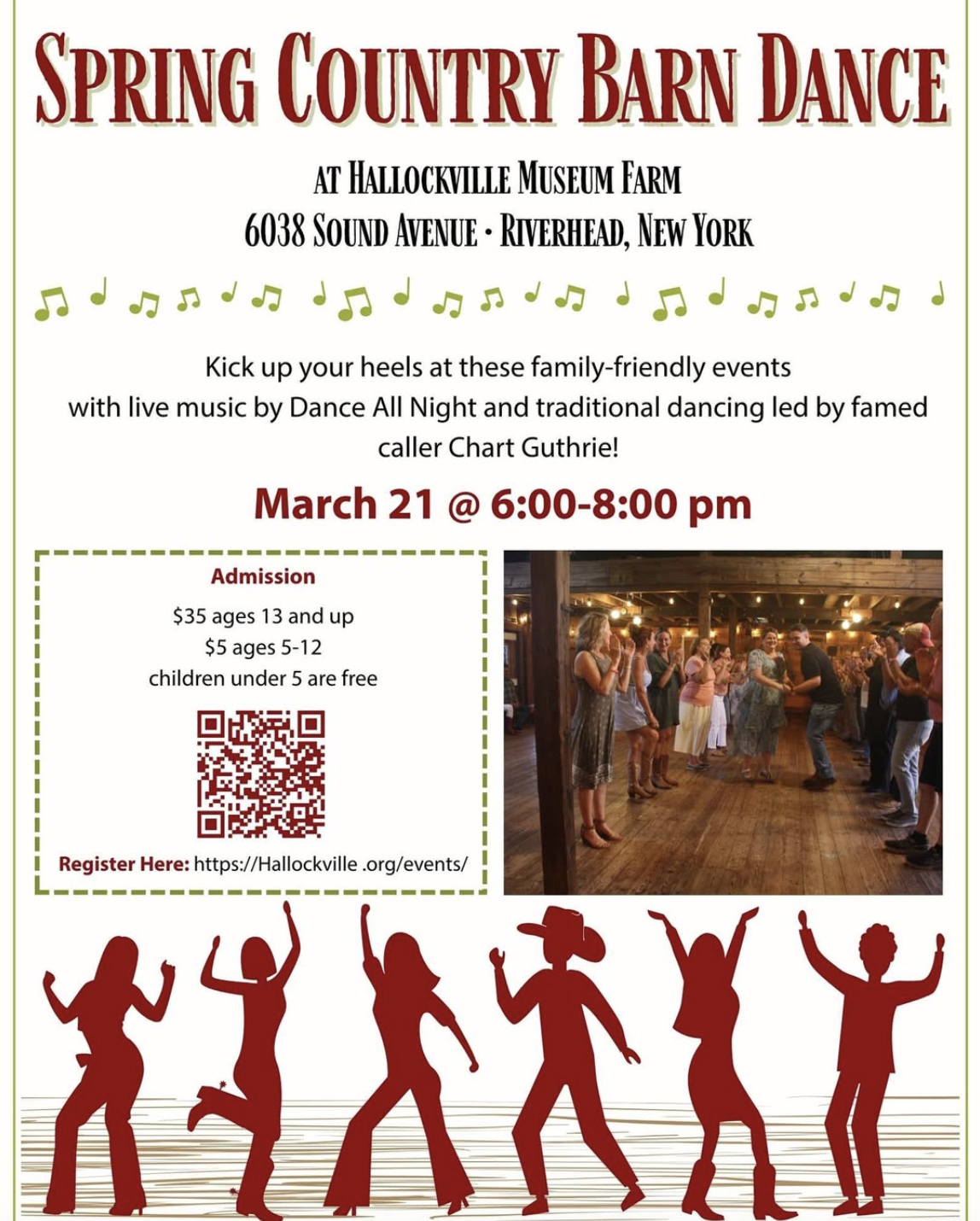 Celebrate the first day of Spring and dance those Winter chills away this Saturday, March 21, from 6 to 8 p.m. in the Historic Naugles Barn (6038 Sound Avenue in Riverhead) at Hallockville Museum Farm.