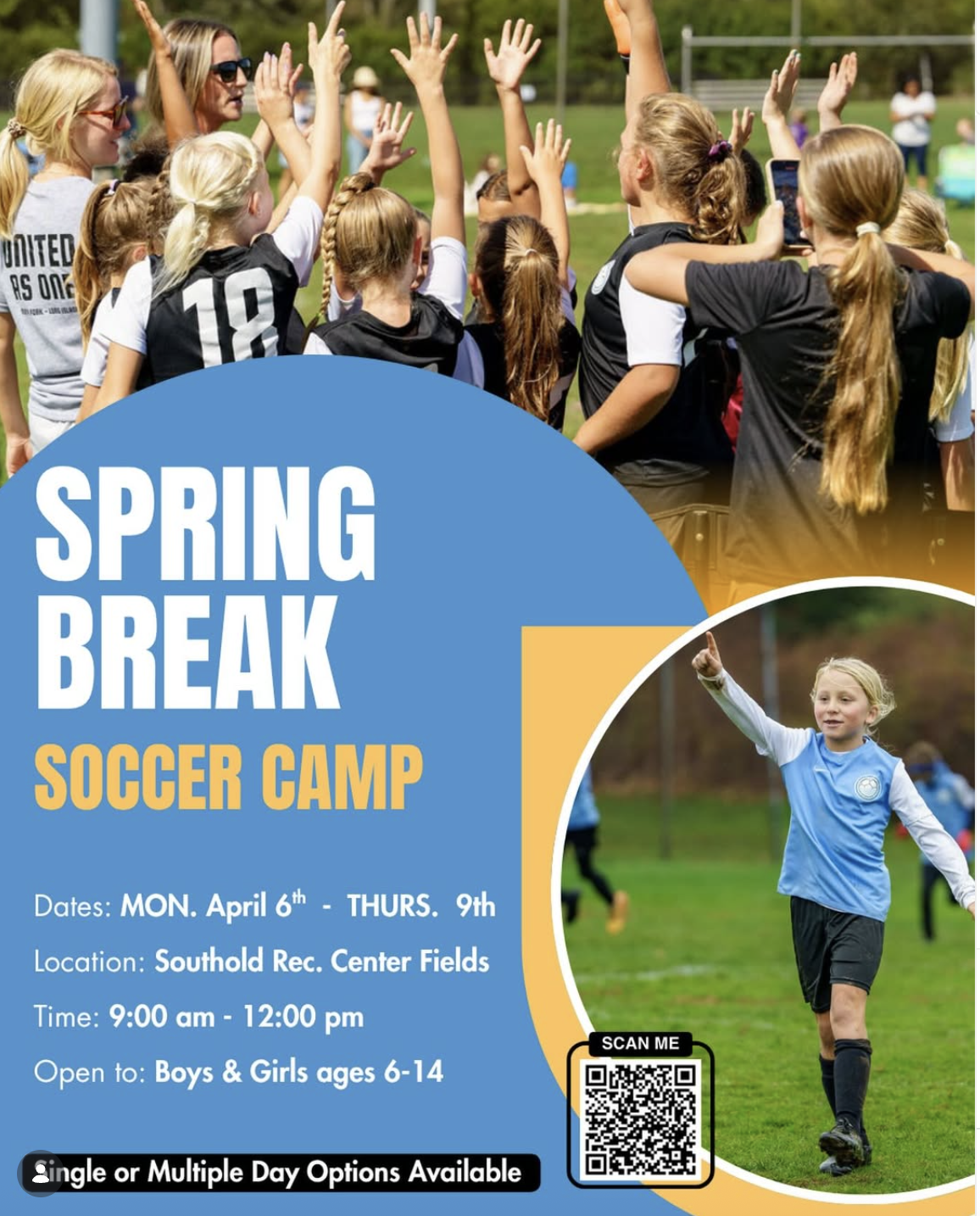 Back to All Events North Fork United Spring Break Camp Thursday, April 9, 2026 9:00 AM 12:00 PM Jean Cochran Park Peconic Lane Peconic, NY, 11958 United States (map) Google Calendar ICS NFUSC Spring Break Soccer Camp will be offered on Monday, April 6th - Thursday, April 9th, from 9:00 am-12:00 pm. Players have single- or multiple-day registration options. Sign up here.