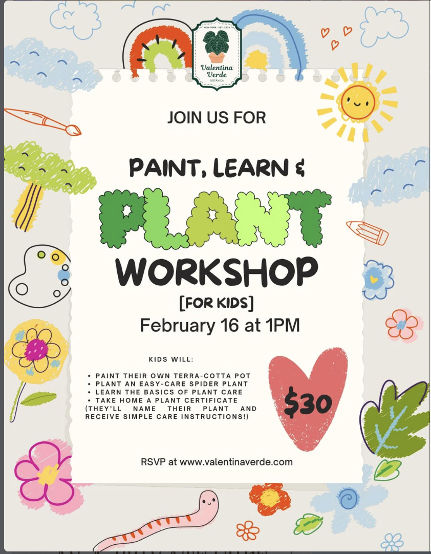Bring the kids to Valentina Verde during February break to learn basic plant care in a fun, hands-on way.