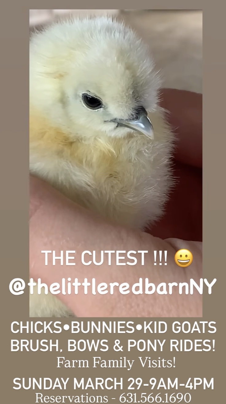 Back to All Events The Little Red Barn Family Visits Sunday, March 29, 2026 9:00 AM 4:00 PM The Little Red Barn 353 Manor Lane Jamesport, NY, 11947 United States (map) Google Calendar ICS