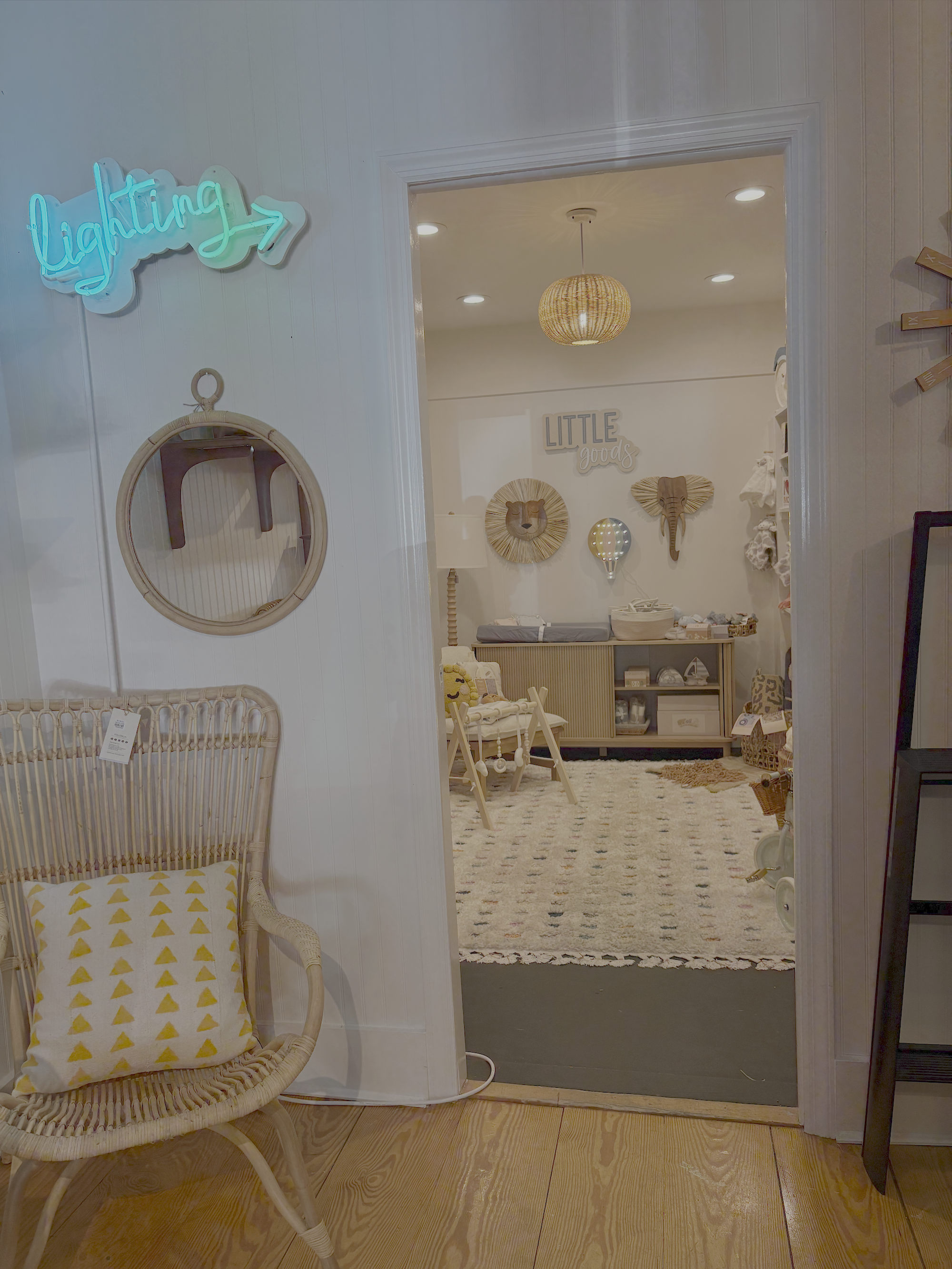 Norine told us that “Little Goods really began with Little Lights, which felt like a natural extension of our handmade lighting collection. As we introduced them, we saw how well they resonated with customers and how they opened the door to a modern nursery concept. From there, it grew organically into Little Goods — another department within touchGOODS as the store continues to evolve.”