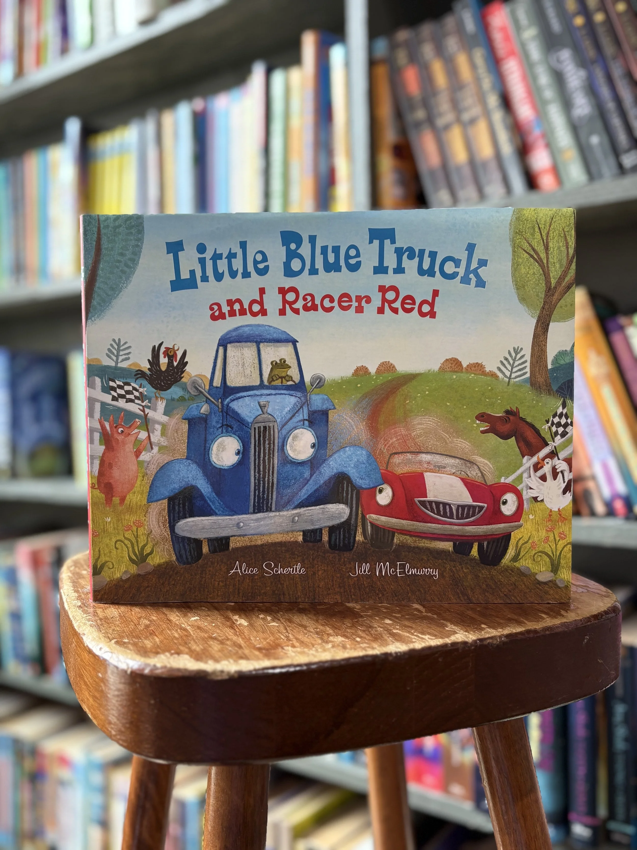 Little Blue Truck and good friend Toad are out for a drive when a flash of red whizzes by — then whizzes back to stop and say hi. Sleek and low, Racer Red is made for speed and loves to go fast! When she challenges Blue to a race, Blue knows that win or lose, it’s fun to try! Beep! Beep! Zooooom!